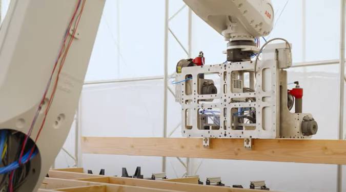 This video shows a collaboration between ABB and Cosmic Buildings to build homes on-site using AI, digital twins and robotics.