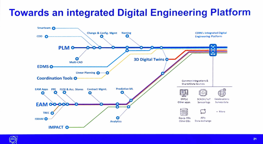 Historically, CERN used legacy CAD systems such as CATIA V5, AutoCAD, SolidWorks, Inventor, Revit, and SmarTeam to manage critical design and operational data, alongside multiple asset and document repositories. However, as the LHC grew in complexity, these tools created inefficiencies, data silos, and challenges around synchronization, verification, and scalability.