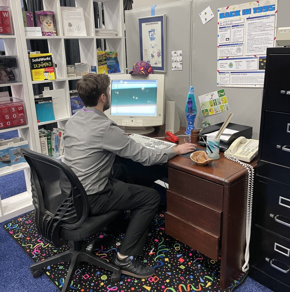 I know because I got a chance to use Solidworks 95 on a delightfully retro desk setup in the 3DExperience World exhibit hall. Attendees could earn swag if they completed a modeling challenge in the original software.