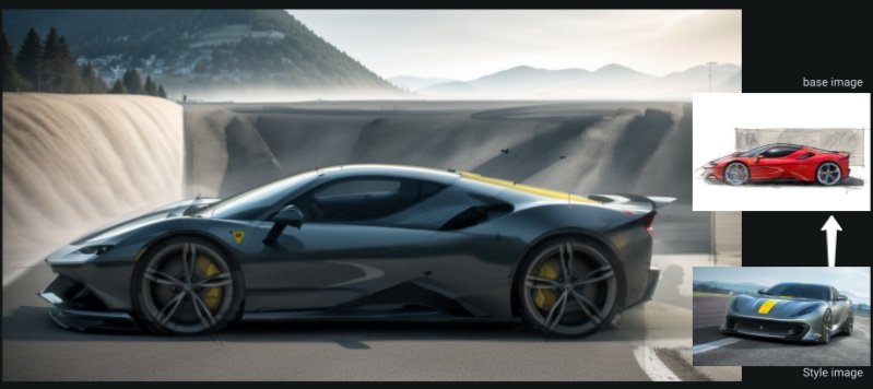 In StyleDrive, users upload two images, a base image and a style image. The style image drives a change to the base image. For example: