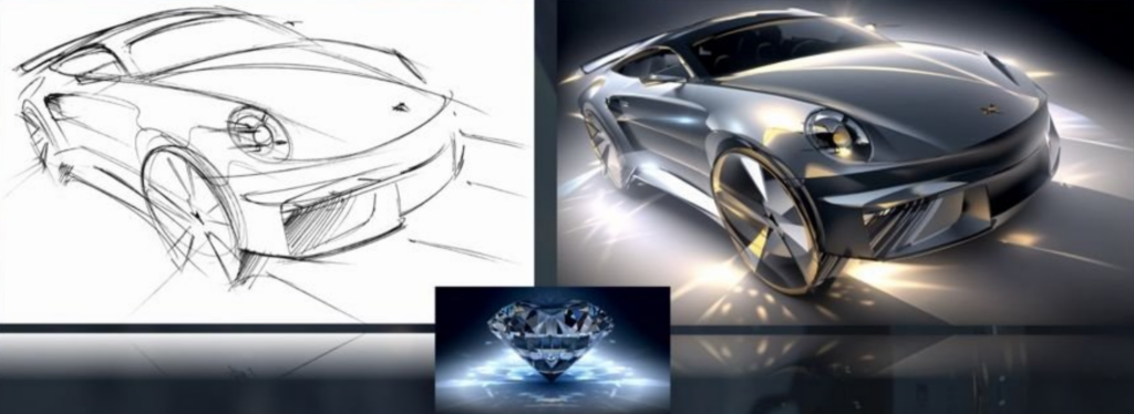 There are no restrictions on what either image can be. A designer could sketch a car and apply the style of a diamond, as in this example: