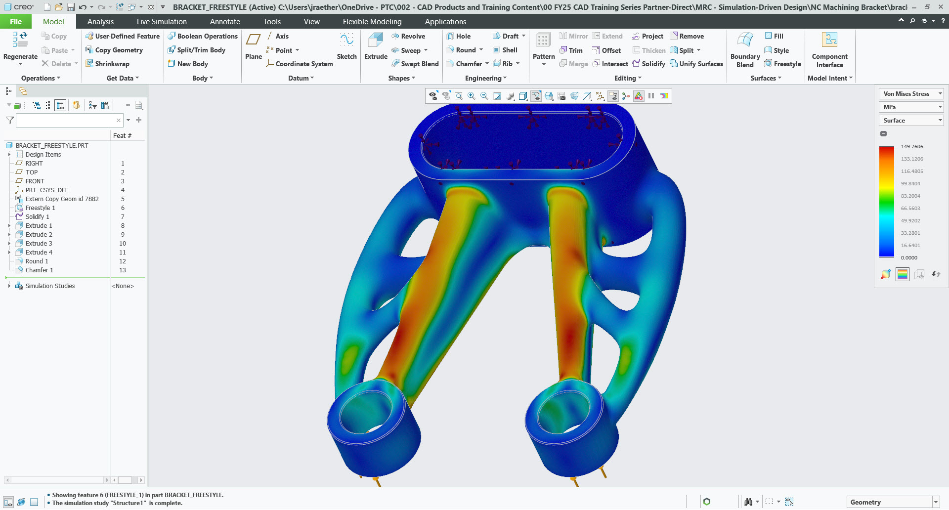 Once the engineer thinks that the design is ready, they can switch from CSL to Creo Ansys Simulation, which functions as a traditional analysis tool. The engineer stops making design edits and focuses purely on simulation accuracy. All boundary conditions (loads, constraints) are transferred into Creo Ansys Simulation for results that are higher fidelity and more precise.