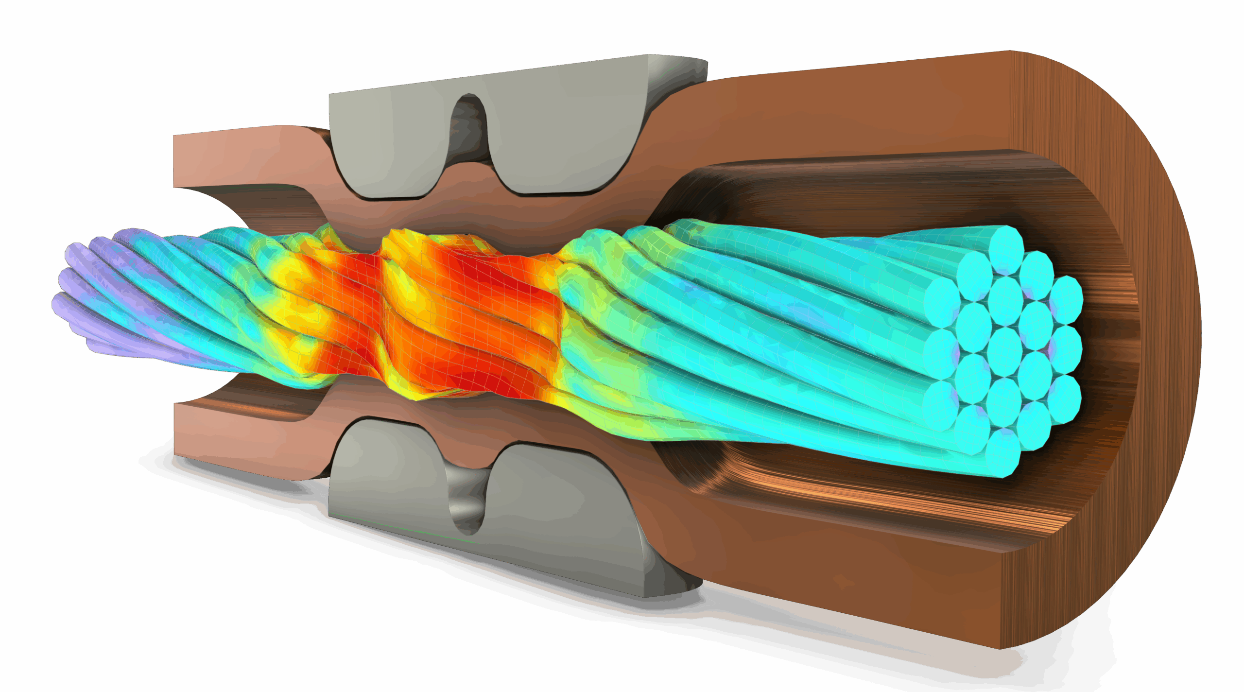 Comsol’s new explicit dynamics analysis can also be used for complicated mechanical contact structures, Sjodin said, such as a cable harness crimping high-power cables.