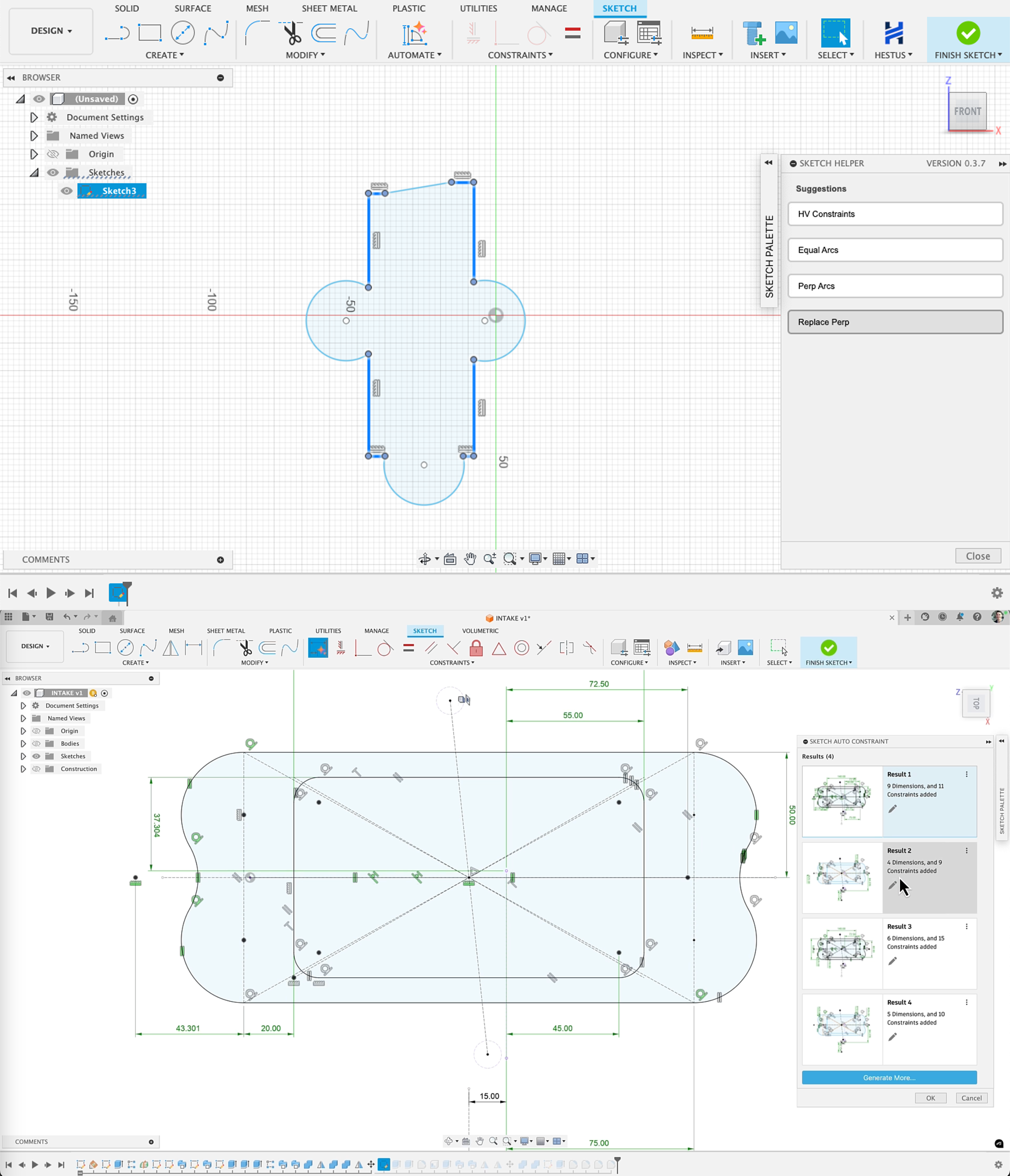 Hestus’ first attempt to fix that slowdown is Sketch Helper, an add-on for Autodesk Fusion that helps users apply constraints to their sketches. It offers on-the-fly suggestions for constraints such as tangents, equalities, and horizontal or vertical lines. Haghighat says features for dimensioning and symmetry constrains are coming soon.